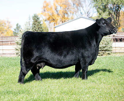 Lazy JB Blackbird Zena 428 Lazy JB Bacardi 8000 X Lazy JB Blackbird 928 428’s first calf “Sundance 6428” was purchased by Herbster Angus Farm and is a leading sire and widely used heifer bull. This moderately designed female is unmatched for her mass, thickness and foot size and quality. Her impeccable udder and front end make her a front pasture design kind of cow and she stamps that same look and quality into her offspring. She was Reserve in her division at the 2015 National Junior Angus Show and Reserve Grand female at the 2015 Western Idaho ROV Angus Show. Her ability to put power and look into all of her calves is undeniable; commercial cattlemen love her muscle, power, frame size and overall quality and the showring loves her for her added look and balance. She’s the best of both worlds and a do it all kind of cow. |